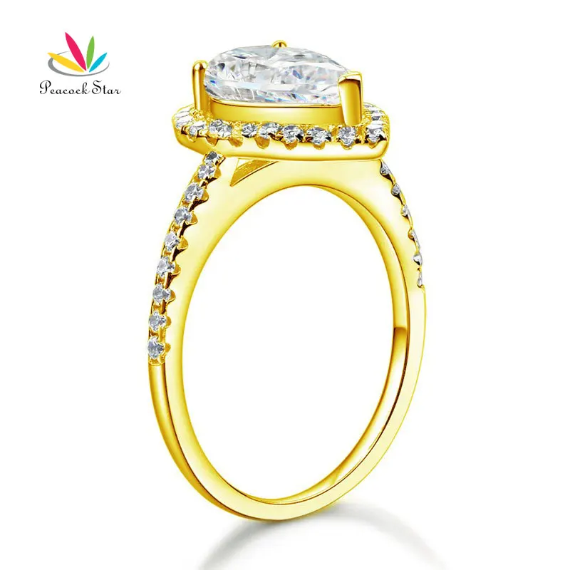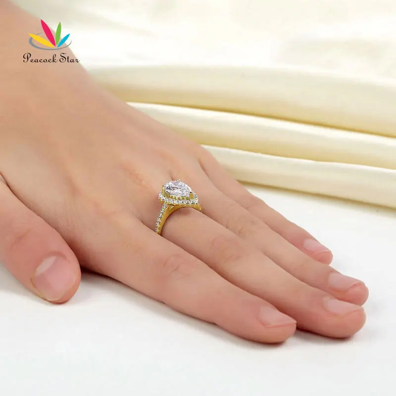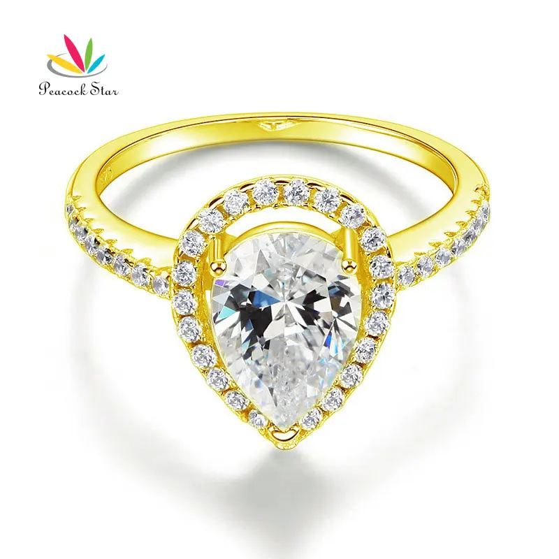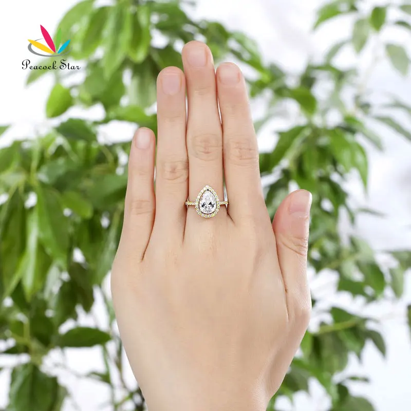 Павлин звезда 2 Ct груша огранка кольцо серебро 925 пробы Золотой Цвет свадебное обещание годовщина помолвка CFR8329