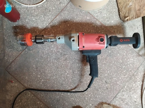Пока работает. Пол часа одно отверстие диаметром 70. Медленно но верно. в Монолитном высотном здании... На арматуру не попадал, коронку не перегревал.