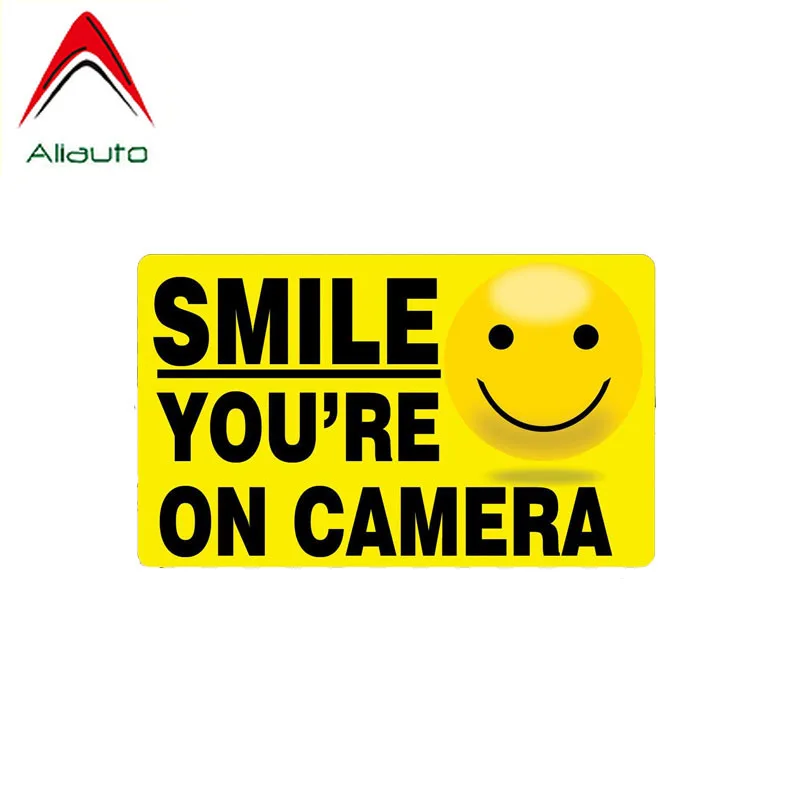 Автомобильная наклейка с предупреждениями Aliauto, персональная улыбка, наклейка на камеру, аксессуары из ПВХ для Prius Priora Suzuki Jimny Vw,13 см * 8 см