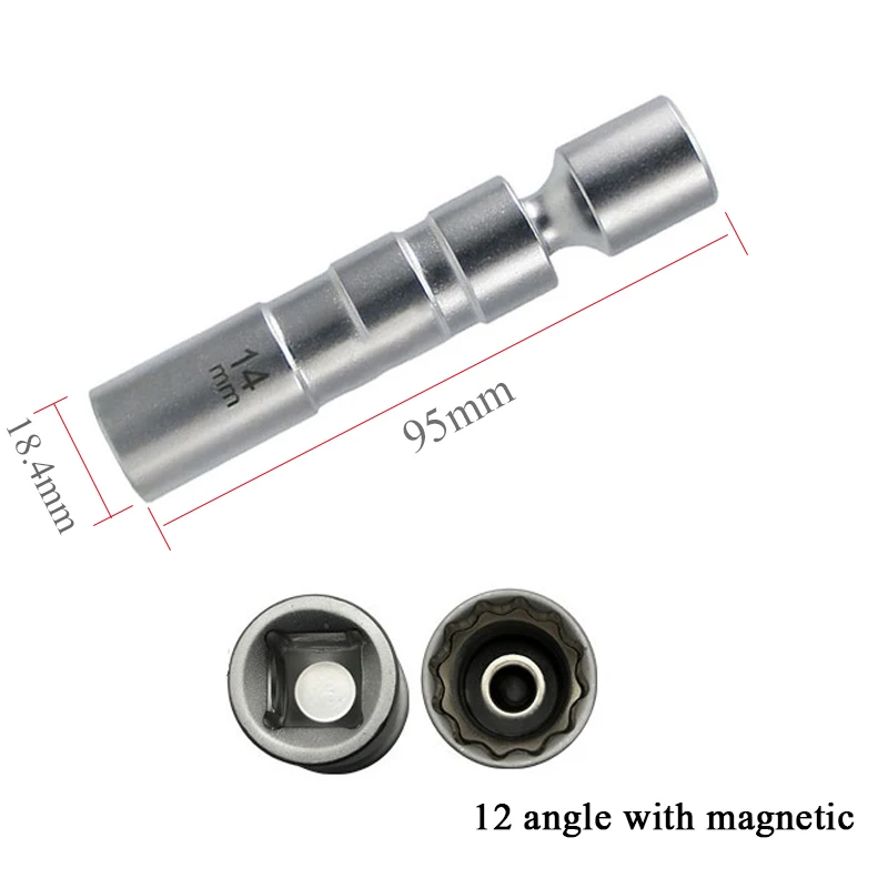 14 мм x 3/8 "D x Bi Hex (12pt)Длина гнезда свечи зажигания: 92 мм изготовлено из хромированного ванадиевого двухшестигранного гнезда с функцией wobble