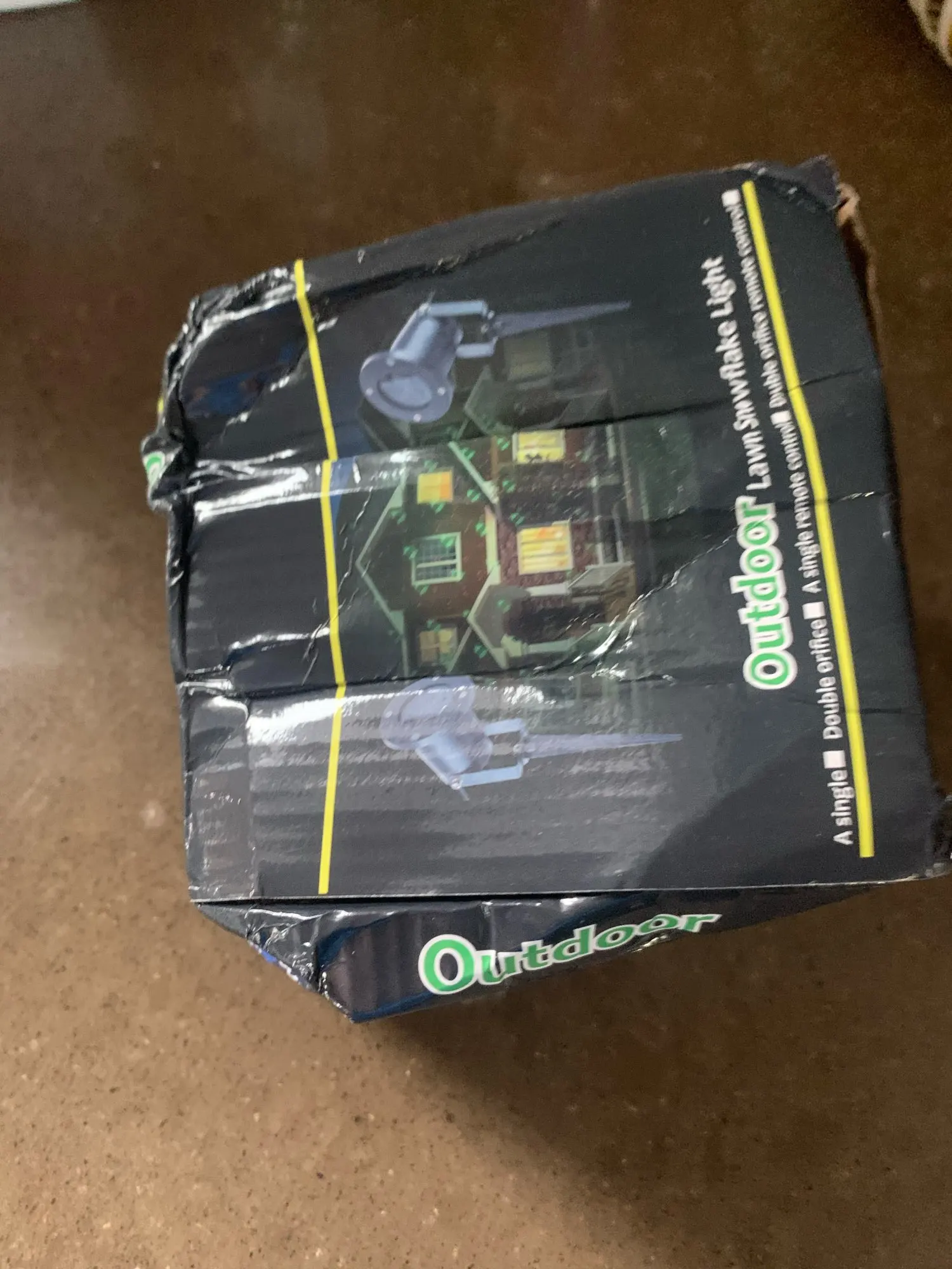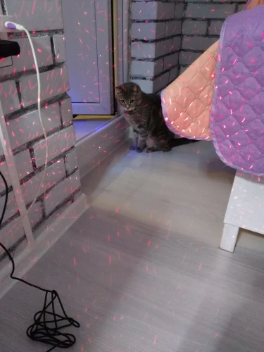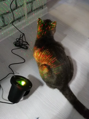 Коробка помята, но это не сказалось на лазере. Работает хорошо, пультом урегулировала скорость картинки. Установила снаружи, проекция на дом, большой охват площади, пультом из дома включаю и выключаю. Видео не грузится, а фото не передаёт красоты кружащихся красных и зелёных точек. Я довольна. Заменяет гирлянды. Смотрится очень нарядно. Надеюсь, прослужит длительное время. Спасибо продавцу. Рекомендую.