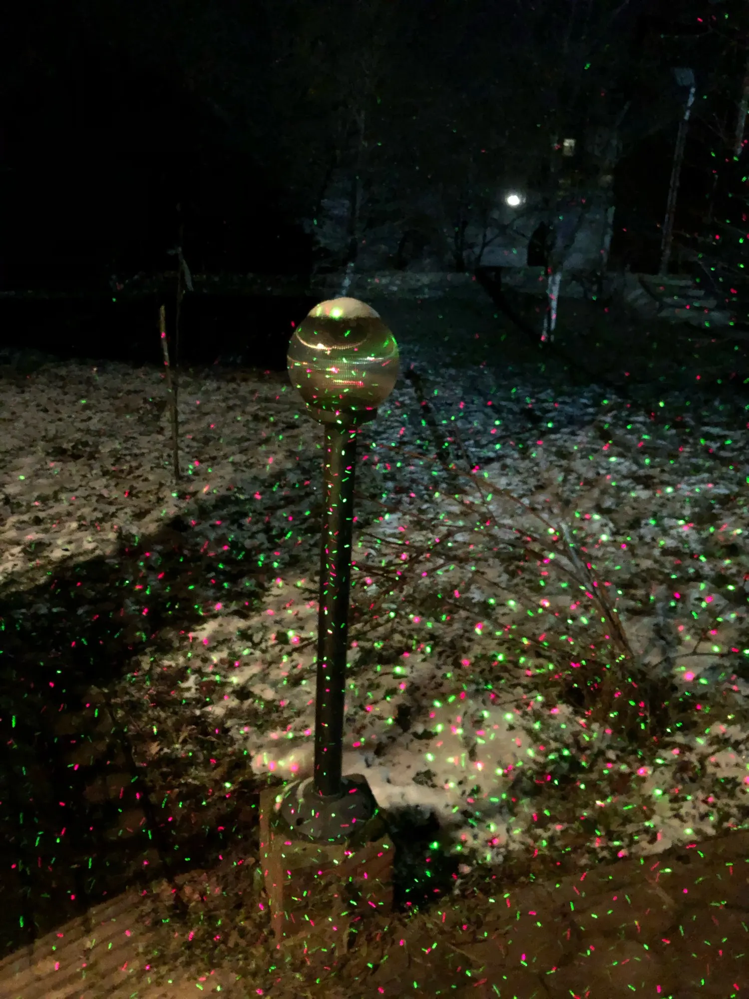 Заказал за 2 недели до нового года, получил 4. 01. Проектор скорее для помещения в комнате супер, а на улице не очень, если фасад дома светлый или сайдинг то красиво, если темный - не очень. Видно в близи с далека не очень ,нужно что-то по мощнее для улицы. Упаковано всё хорошо, надо проверить пульт, батарейка 2025 есть режимы ускорения и замедление, цвет зелёный красный.