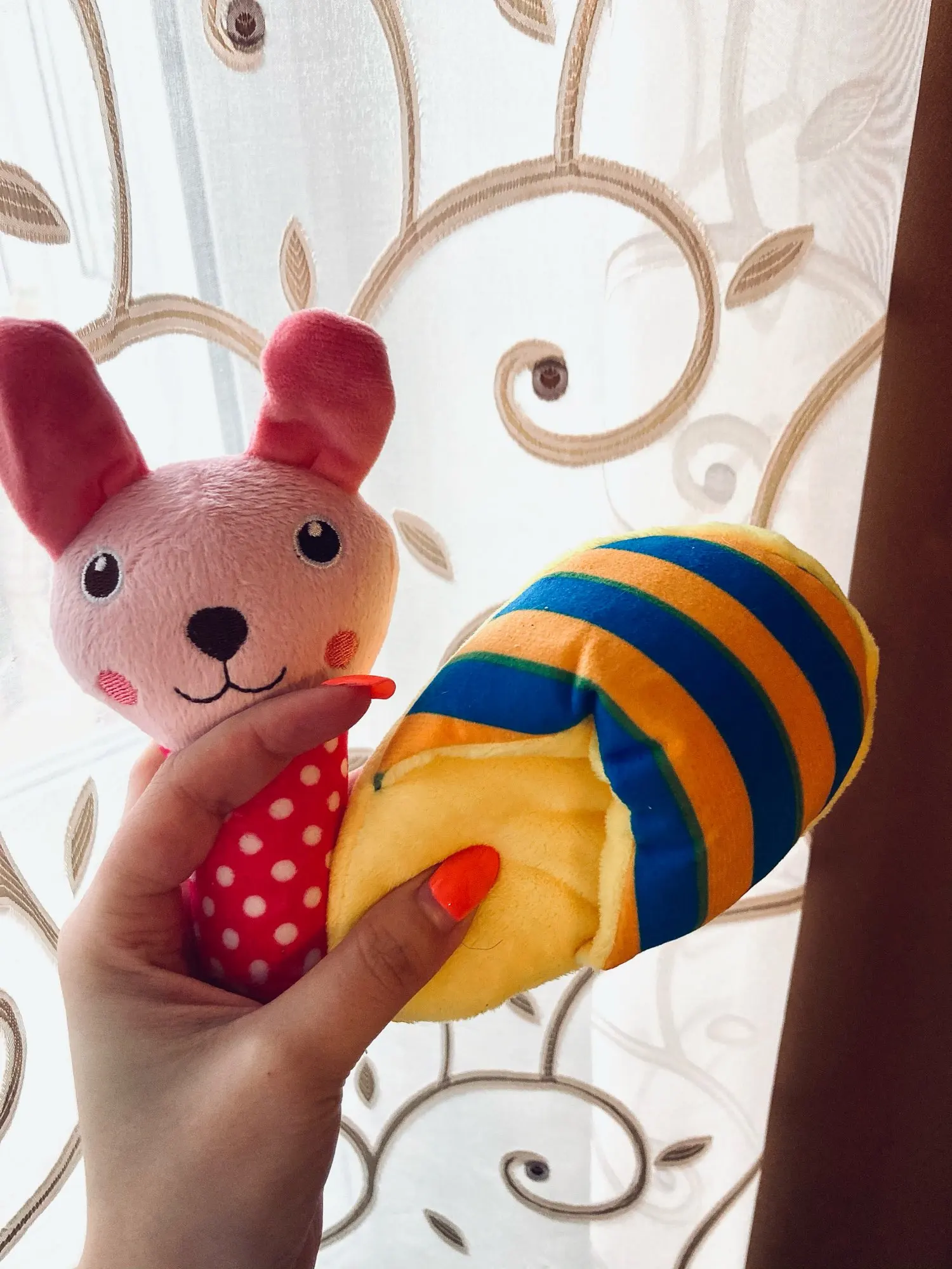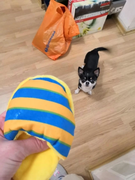 Отличный заяц, для чихуа 2,5 кг отлично, она сразу его стала гонять и заниматься игрушкой, сшито отлично, внутри пищалка. Рекомендую этого милого зайку для мелких собак в том числе.