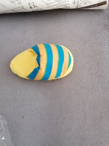 собака довольна. купила т к она все время грызет тапки. тапочек не большего размера, для маленькой собаки в самый раз