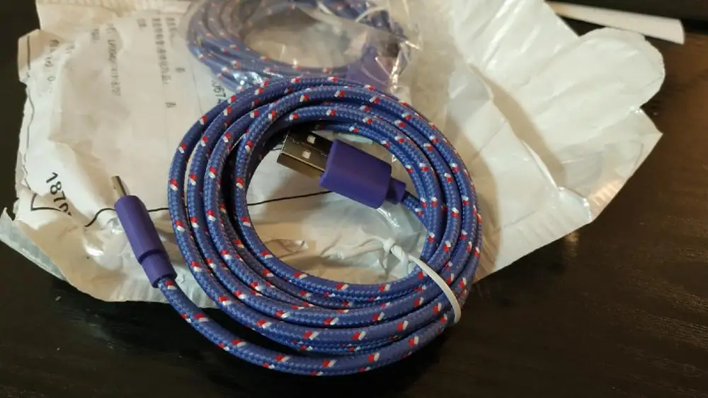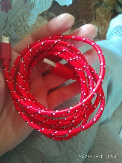 Посылка шла примерно месяц. Оплётка хорошая, думаю заломов не будет. Длинна три метра, для тех у кого розетка далеко, а в телефоне посидеть хочется рекомендую. А так советую брать короче, т.к. зарядка получается медленная.