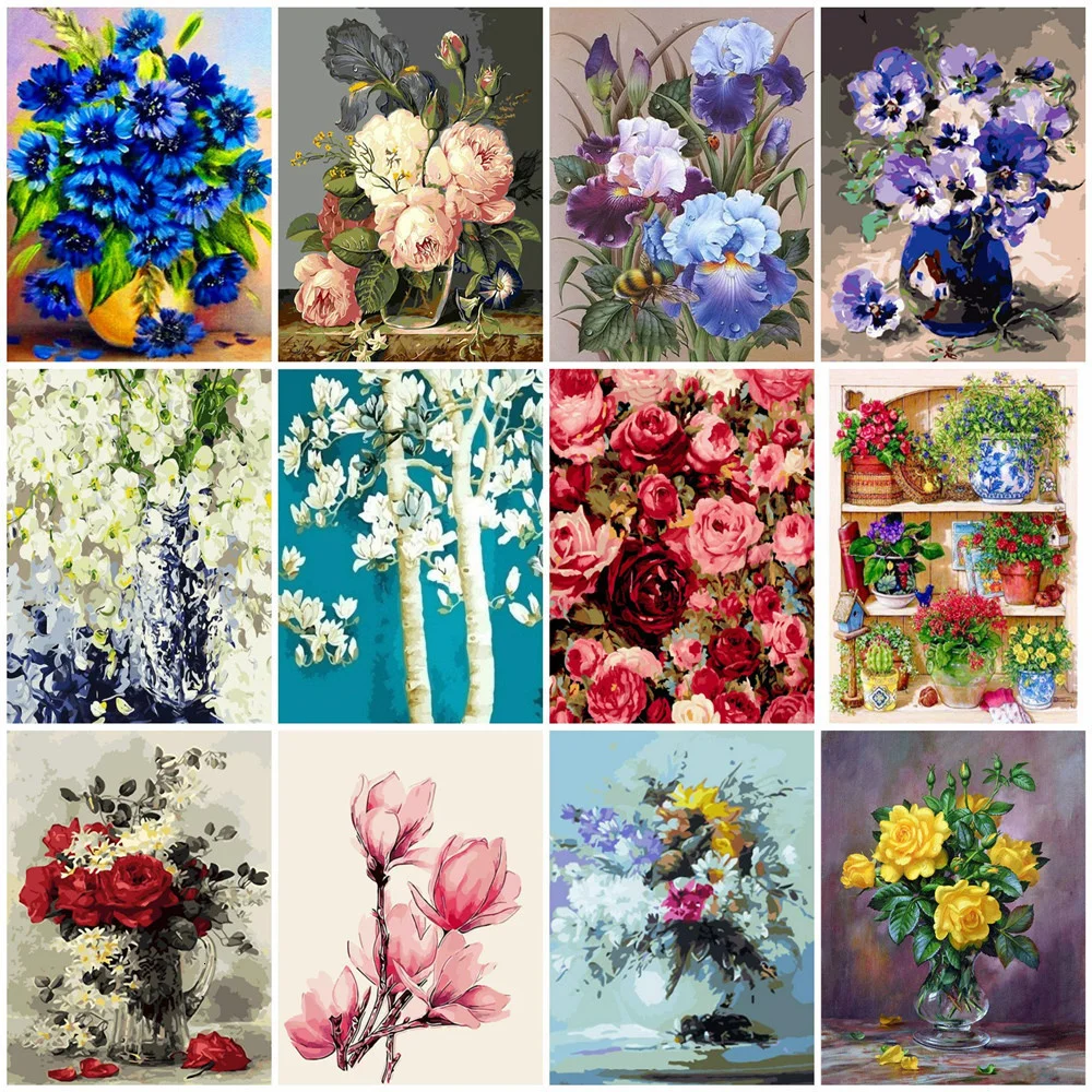 Масляная живопись HUACAN по номерам, наборы изображений с цветами, ручная роспись, подарочный набор сделай сам, Картина на холсте, украшение для дома