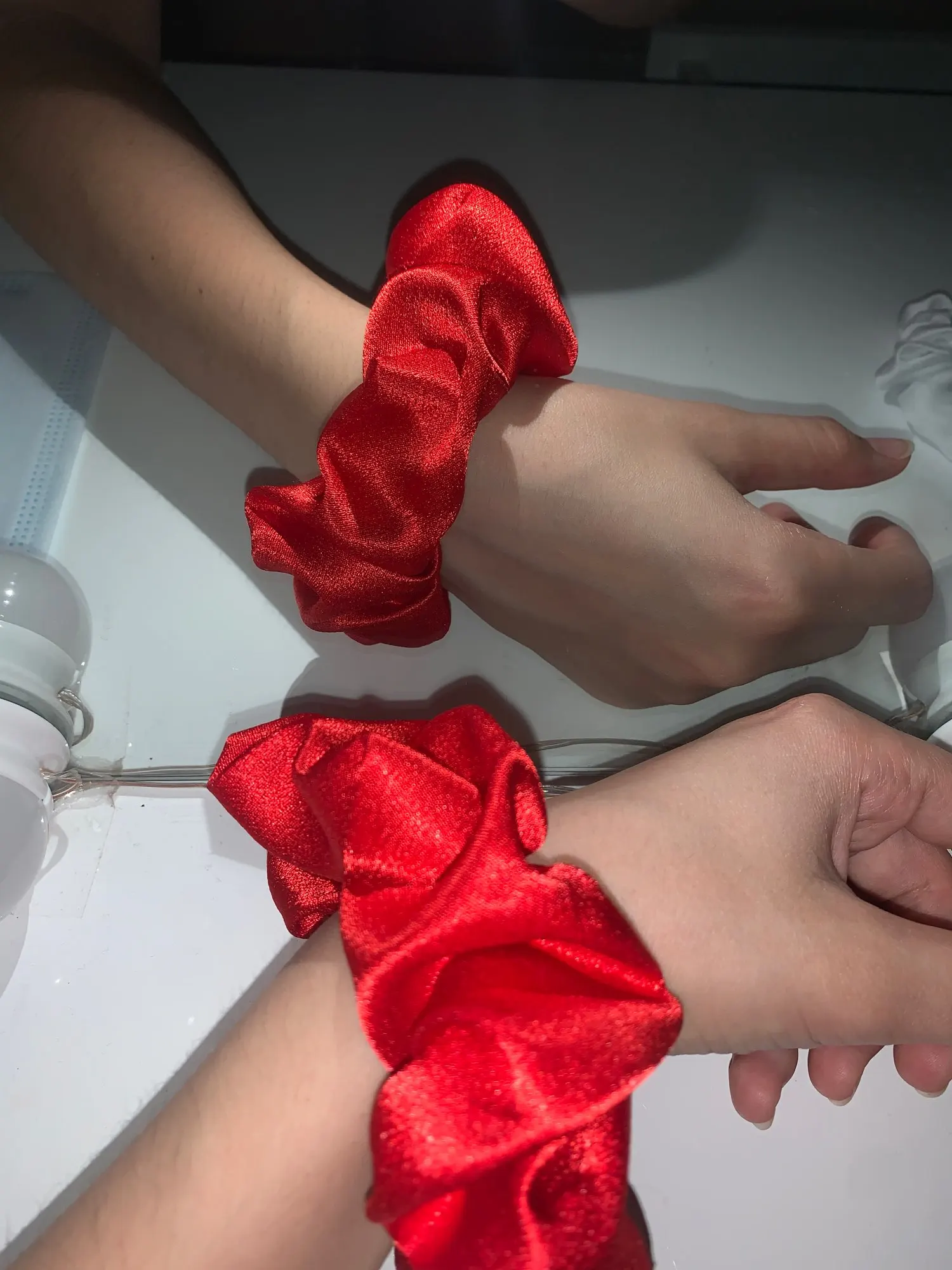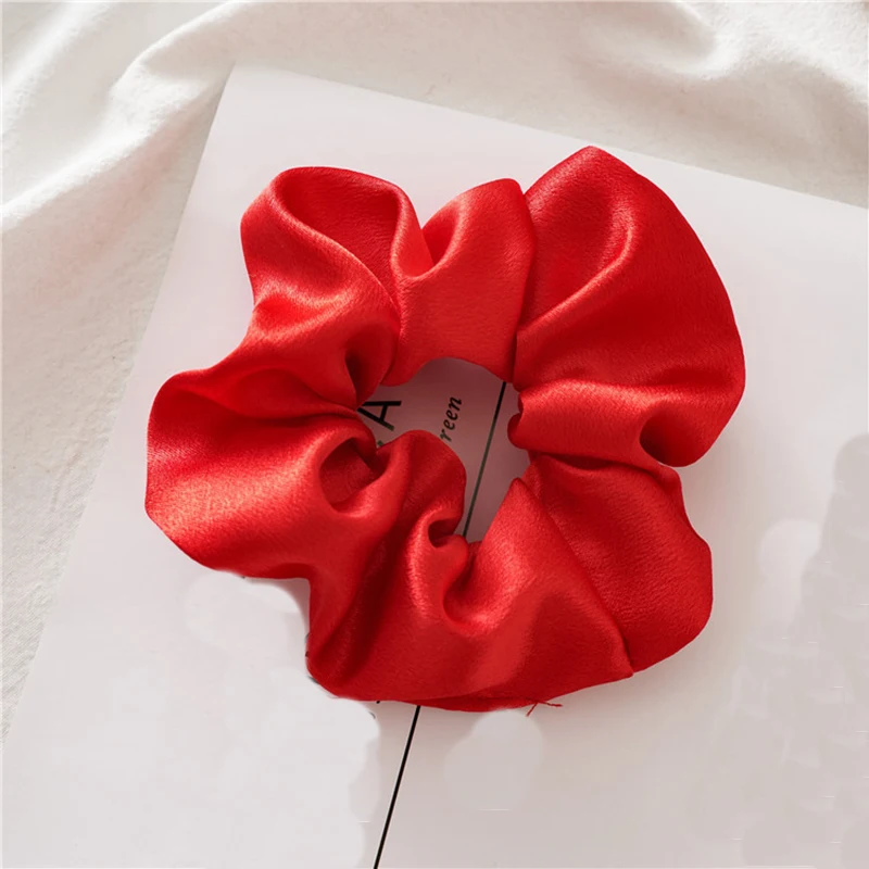 Резинки для волос однотонные атласные, эластичные Завязки для хвоста, шелковые аксессуары для волос, держатели головных уборов, красные
