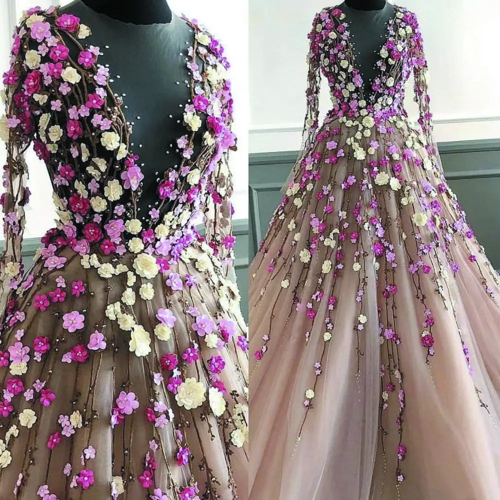 Женское вечернее платье ручной работы, элегантное Прозрачное платье с длинным рукавом и цветочным принтом, украшенное бусинами, для выпускного вечера, 2020