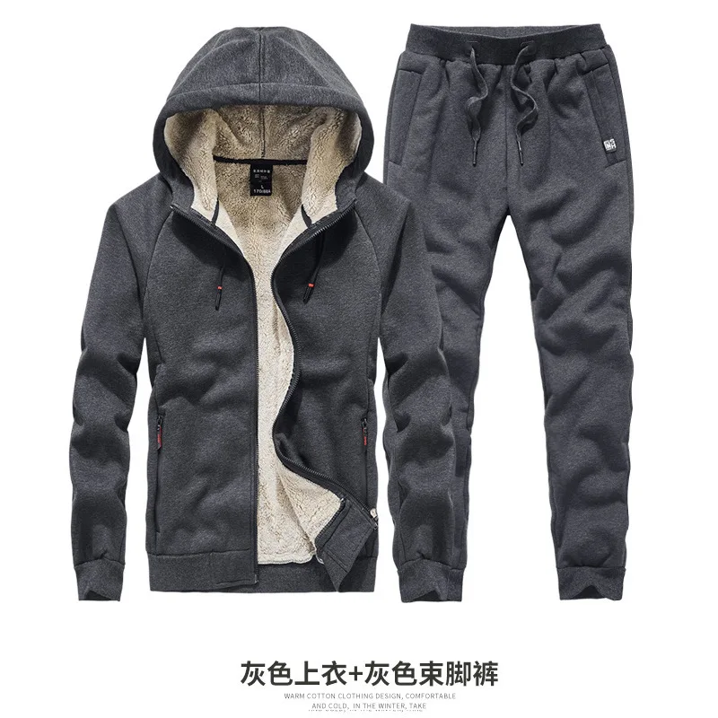 Новинка зимы ягненка толстовка, куртка + штаны, комплект из двух предметов повседневная спортивная одежда спортивный костюм теплая дутая куртка большой Размеры наборы мужские 7XL 8XL 2020