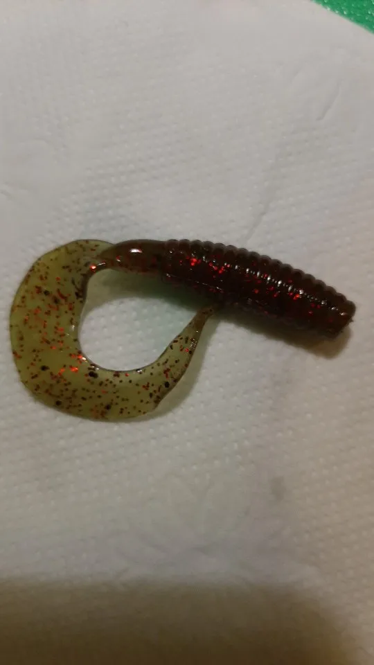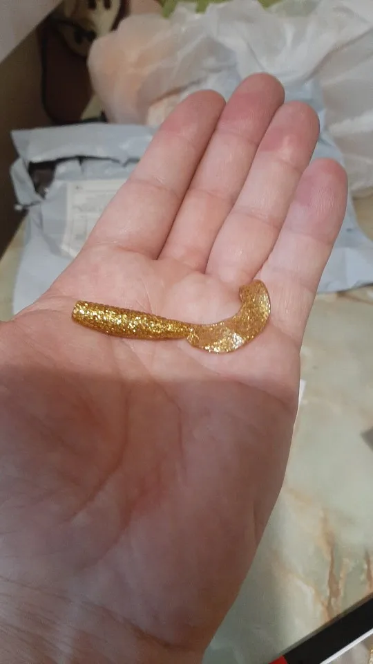 Обычный твистер,2дюйма. Мягкий ,отчётливо пахнет креветкой.