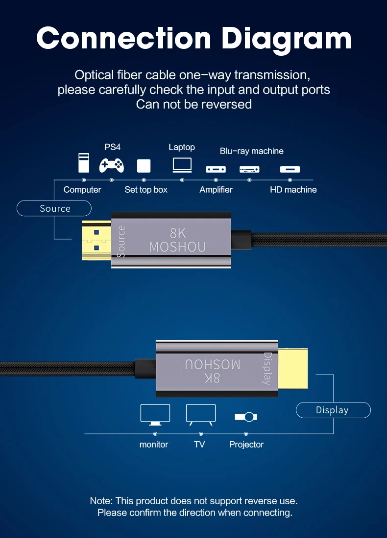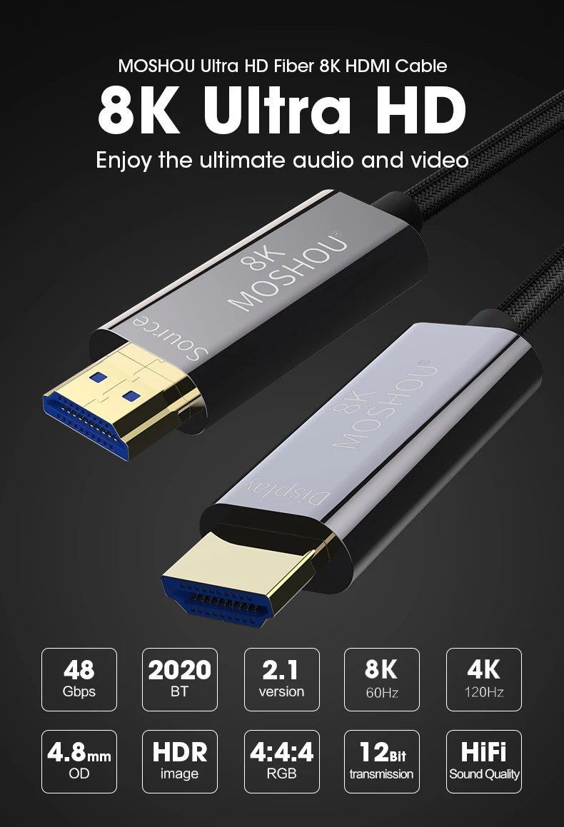 8K волоконно-оптический HD 2,1 кабель ARC HDR 4K 120Hz MOSHOU мульт...