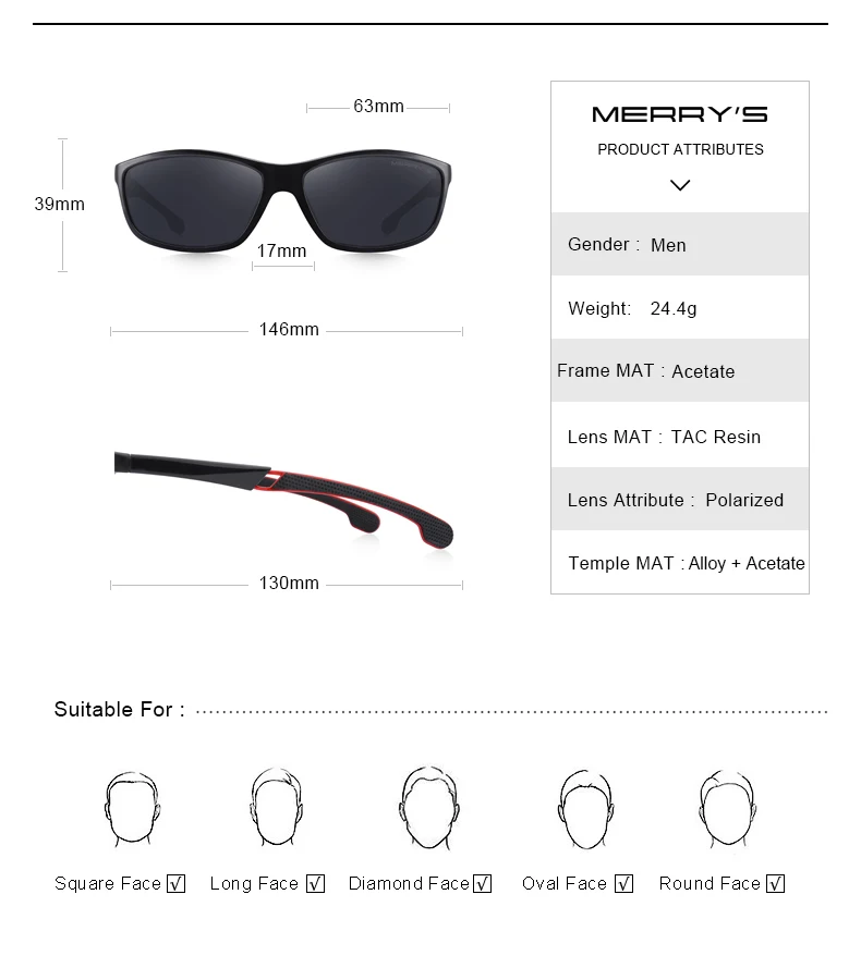 Мужские солнцезащитные очки MERRYS, дизайнерские поляризационные оч...