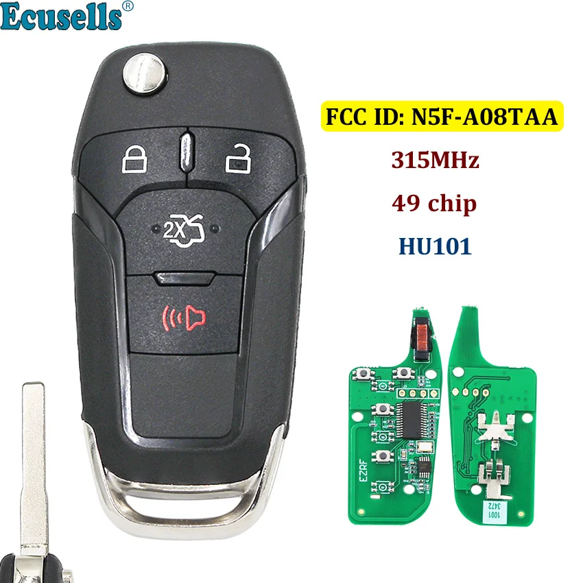 Брелок с дистанционным управлением и 4 кнопками, 315 МГц, с чипом 49 Hitag Pro для Ford Fusion 2013-2015, идентификатор FCC: N5F-A08TAA HU101