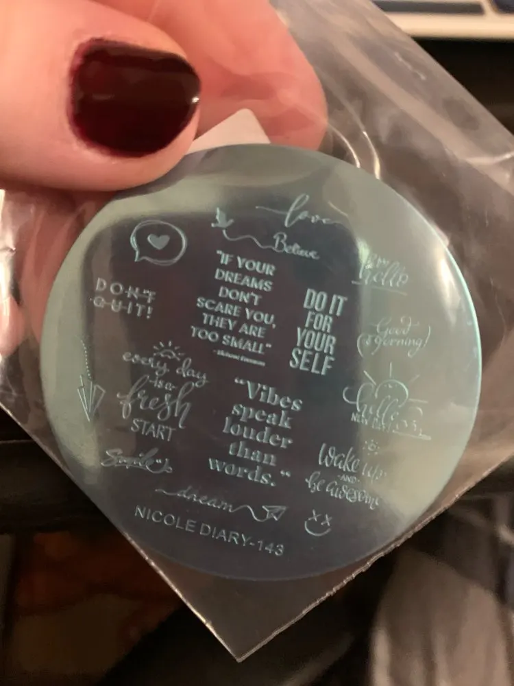 долгое ожидание ( месяц в РБ) стоило того ! товаром более чем довольна ,пластины на правый взгляд тонкие, но это не влияет на отпечатывание. лаки жидковатые ,но хорошо отпечатываются и выглядит прилично. Всё упаковано в гиппер пакеты. прокатеканий нет. буду заказывать ещё. советую.