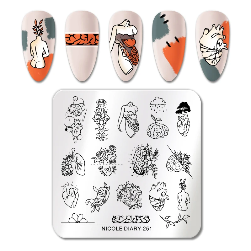 Штамп для ногтевого дизайна NICOLE DIARY, шаблон для печати