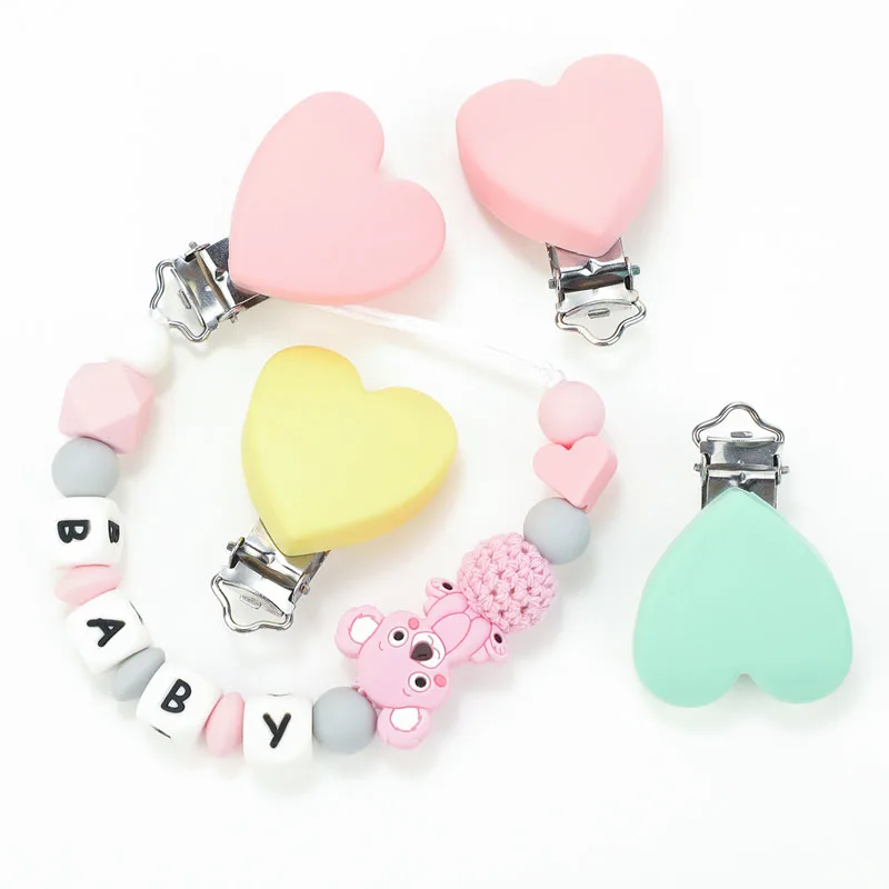 TYRY.HU, 3 шт., круглые силиконовые зажимы в форме сердца для соски, без бисфенола, силиконовые зажимы для пустышки, Детская цепочка для соски, аксессуары сделай сам