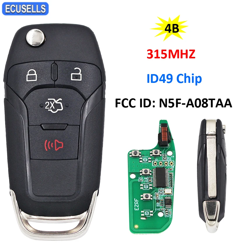 Складной дистанционный ключ для автомобиля, 3 + 14 кнопки, 315 МГц, Hitagpro 49 чипов, FCC ID: для Ford Fusion 2013-2015, HU101 Blade