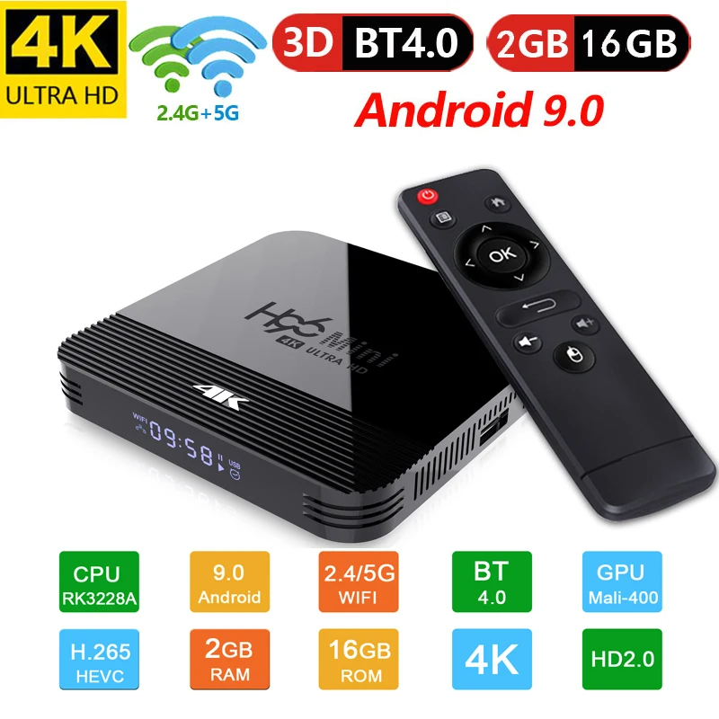-CPU:RK3228A 28nm четырехъядерный процессор Cortex A7 -GPU:ARM Mali-400 GPU -ОС: Android 9,0 -Память: 1 ГБ/2 ГБ DDR3 -Вспышка: 8 ГБ/16 ГБ Emmc -WiFi: 802,11 a/b/g/n 2,4G/5G -BT:BT4.0 -Проводные сети: Ethernet GMAC 10/100M Ethernet контроллер, Поддержка 10/100 Мбит/с скорость передачи данных и RGMII интерфейс -HDMI: включая HDMI 2,0 для HDMI 2,0 для спортивной экшен-камеры 4K YUV420 @ 30 Гц с HDCP 1,4/2,2, Поддержка 4K 10 бит H.265/H.264/VP9 воспроизведение видео и дисплей
