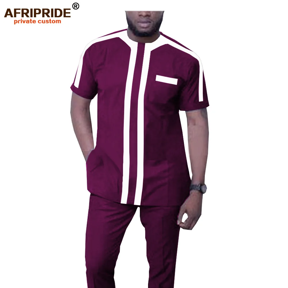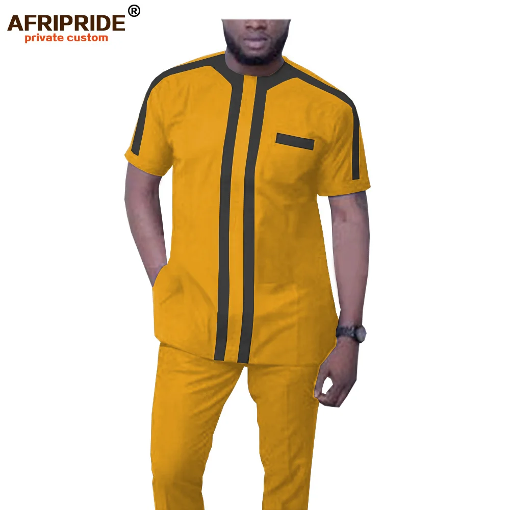 2019 африканская Мужская одежда, большие и высокие Дашики, топы с коротким рукавом + брюки из Анкары спортивный костюм с карманами, воск AFRIPRIDE A1916044