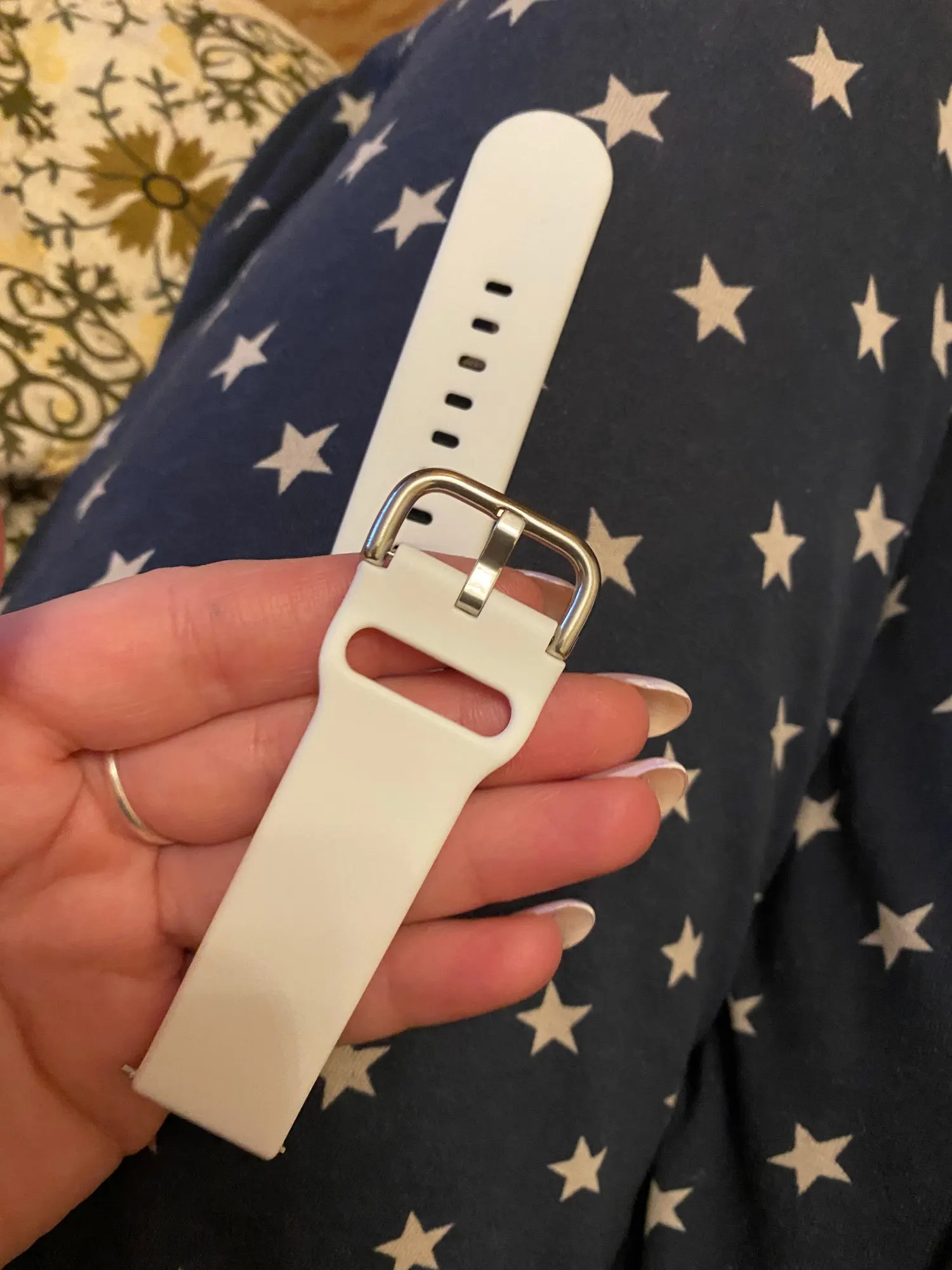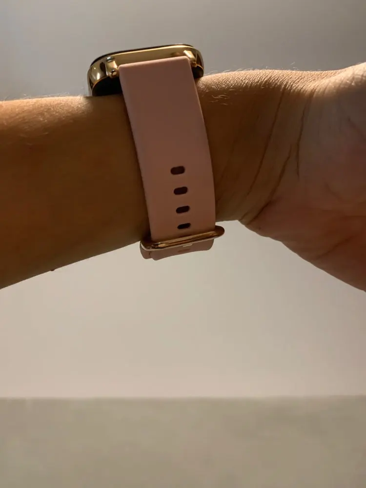 Ремешок понравился, мягкий, приятный, цвет как на фото - пудровый, красивый. У меня тонкое запястье, ремешок длинноват, я решила обрезать. Угловатые края давили и я их обожгла - стали гладкие и мягкие. Только застежка получается сбоку немного.)) Закажу еще другой цвет.