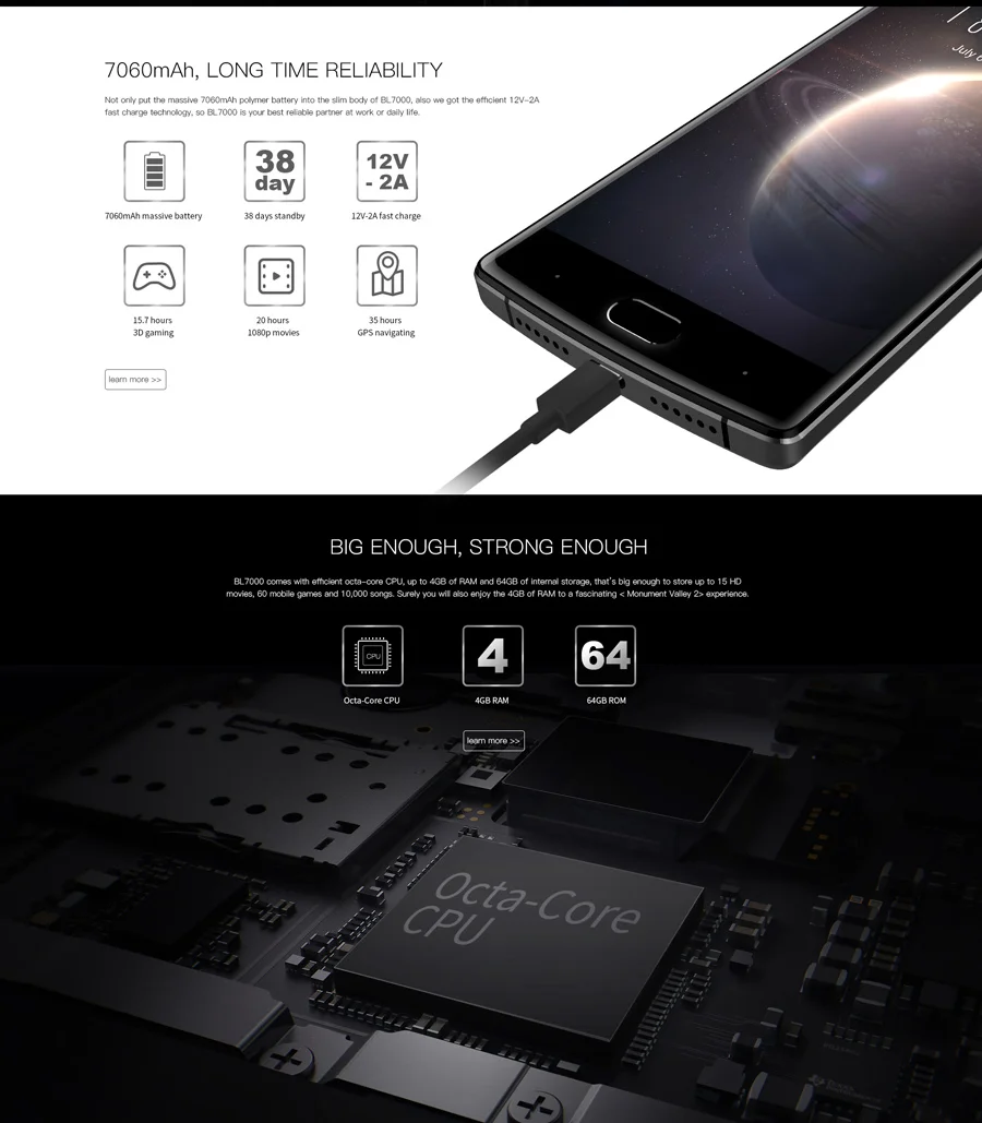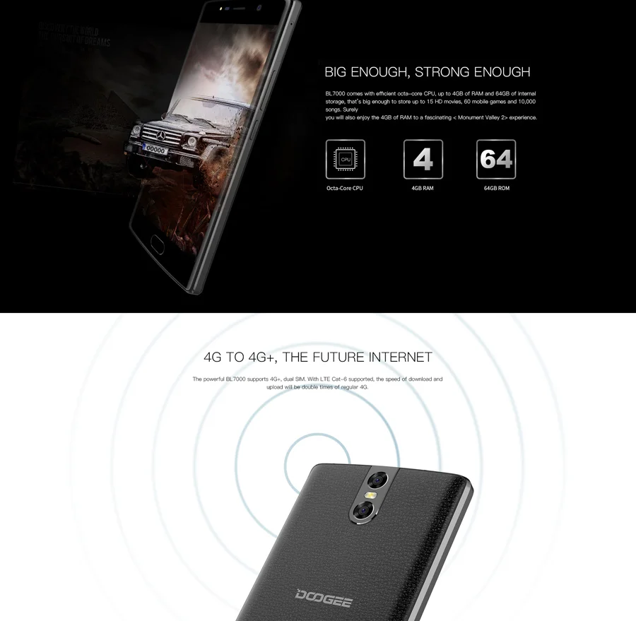 Смартфон DOOGEE BL7000 4G LTE, 7060 мАч, Восьмиядерный MT6750T, 4 Г...