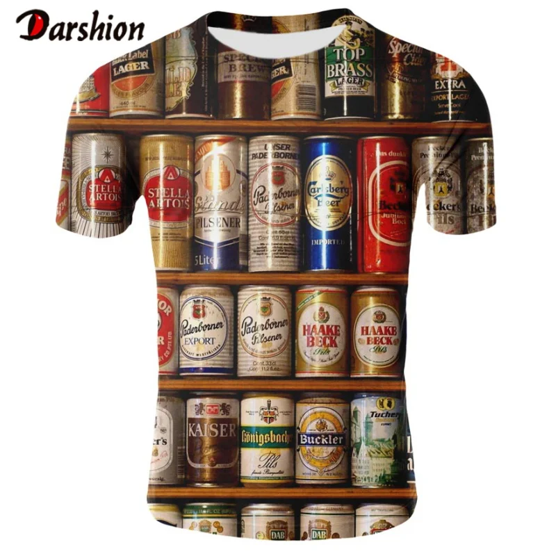 Новое поступление, новинка, модная 3D футболка, Мужская футболка с принтом банок пива, хип-хоп, с коротким рукавом, для мужчин и женщин, футболки, топы, оптовая продажа