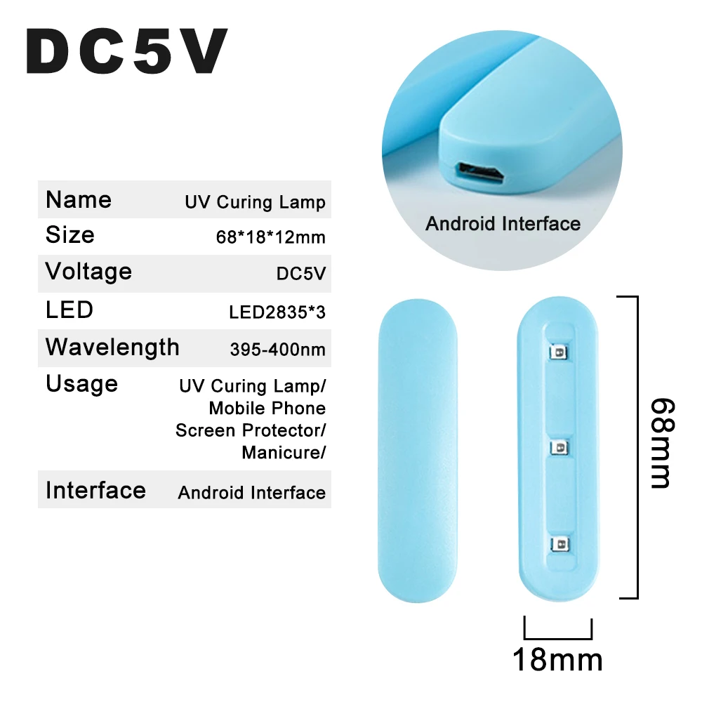 Ультрафиолетовая отверждасветильник лампа, Миниатюрная лампа для геля с интерфейсом USB на Android, с адаптером для маникюра, 5 в постоянного тока