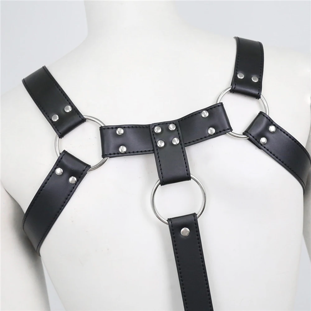 Регулируемый из искусственной кожи мужской нагрудного ремня и металлические кольца дял пениса тела секс, фетиш, бондаж ограничения костюмы Для мужчин сексуальное горячее нижнее белье