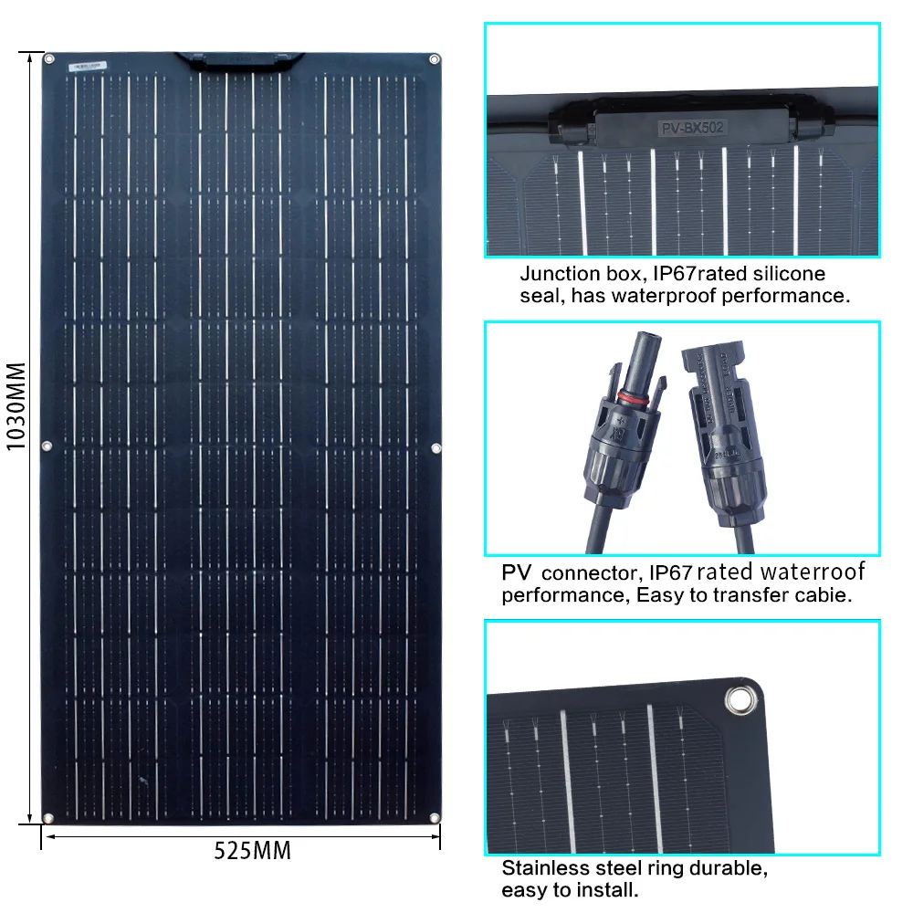 Описание продукта:1) Этот продукт является многофункциональным солнечным зарядным устройством, которое может заряжать большой аккумулятор, как лодка, яхта, автомобиль;