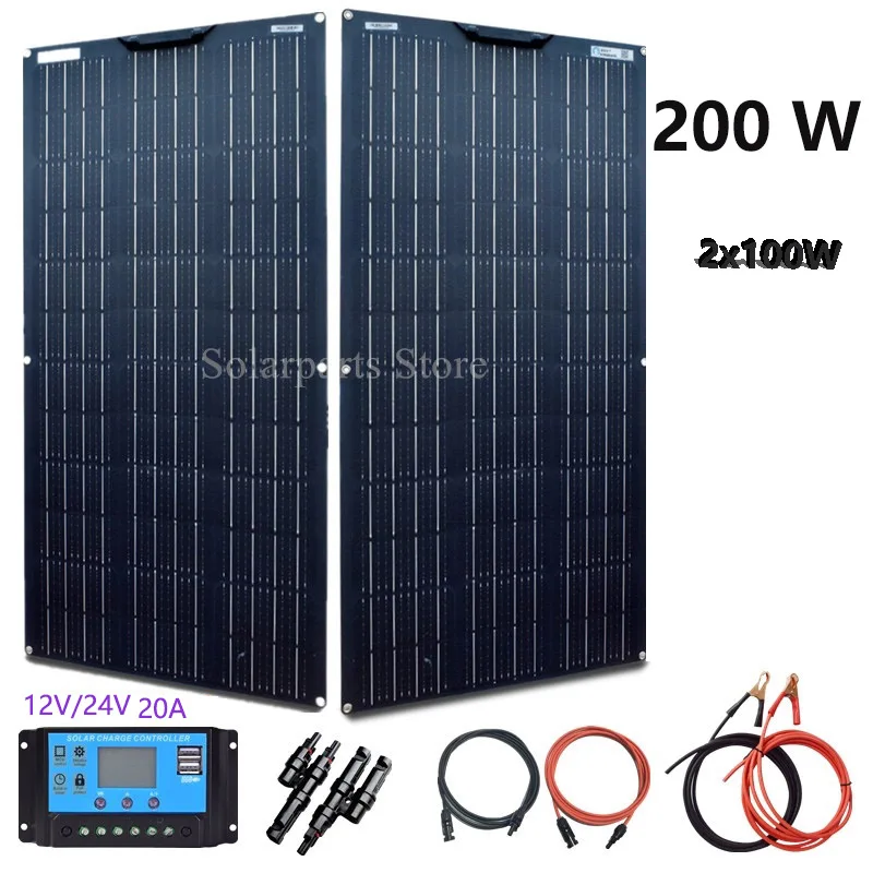 BOGUANG солнечная панель 200 Вт 12 В 24 в 100 Вт 2шт Гибкая фотоэлектрическая система CE 20A кабель контроллера Бесплатная доставка Китай