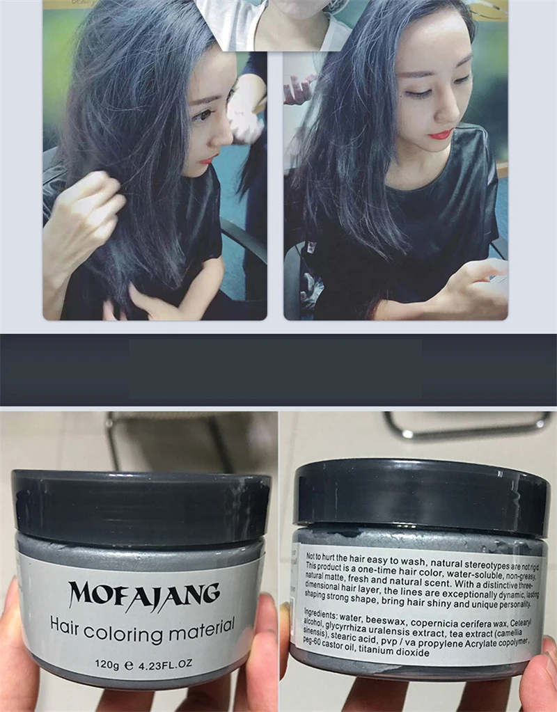 MOFAJANG цветной воск для волос, для укладки, помазок, серебро, бабушка, серый, одноразовый, натуральные волосы, сильный гель, крем, краска для волос для женщин и мужчин, 120 г