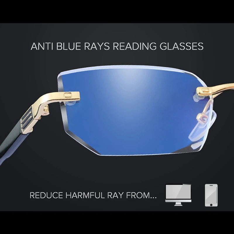 Очки для чтения мужские, без оправы, с бриллиантовой отделкой и защитой от сисветильник света