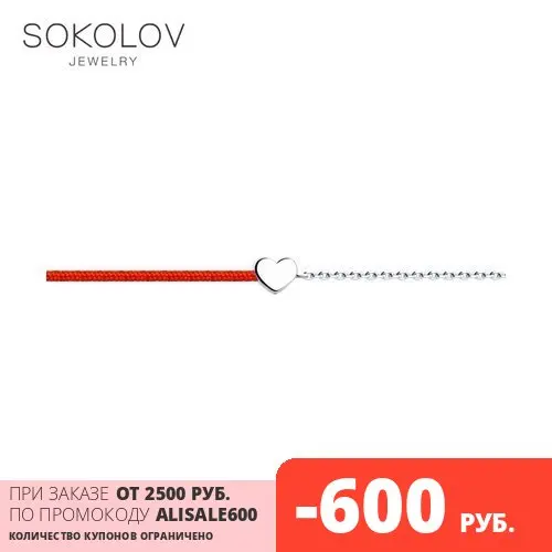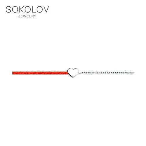 Браслет Сердце SOKOLOV, Серебро, 925, Браслеты на руку, Оригинальная продукция