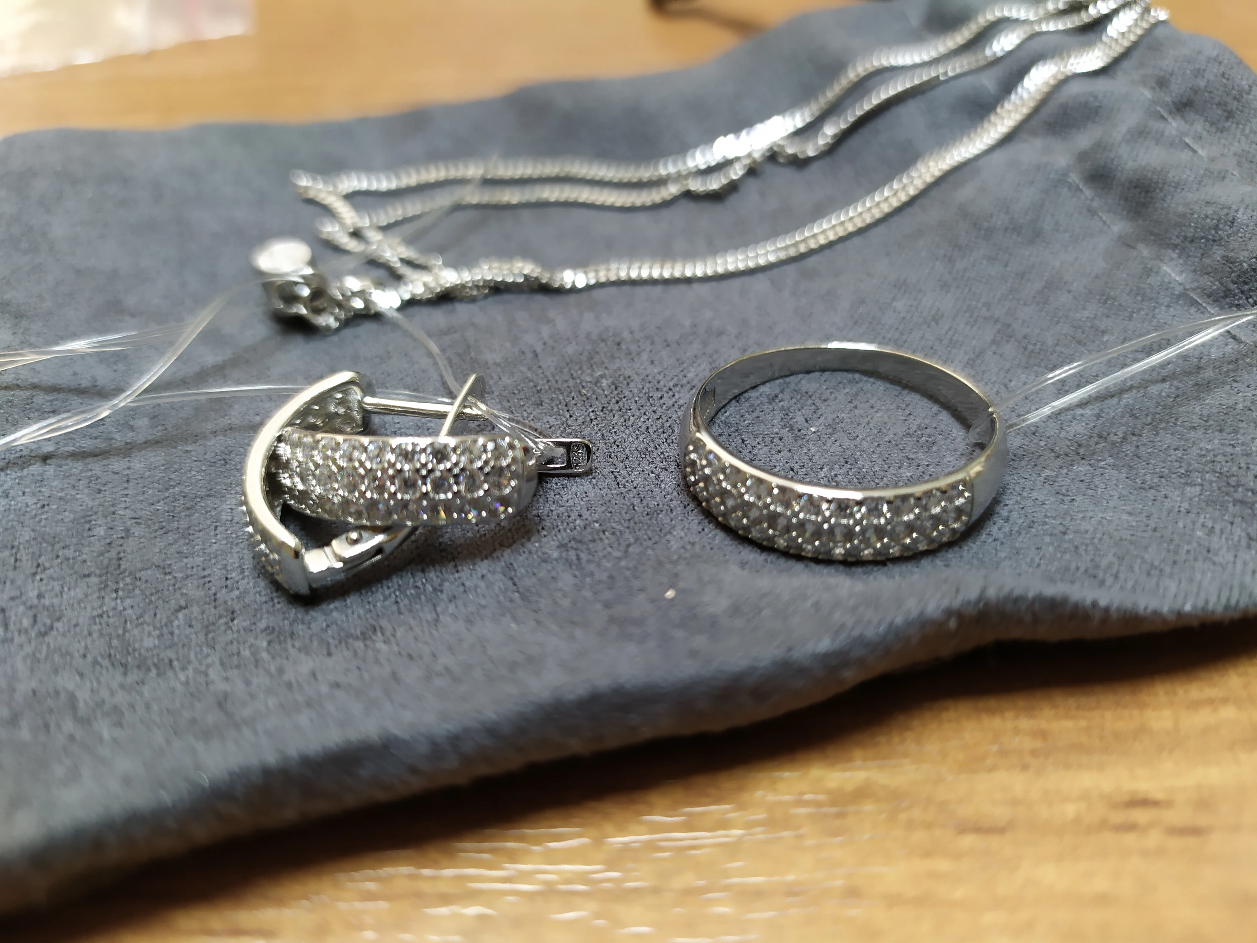 Взяли кольцо, серьги и цепочку молодой девушке в подарок. кольцо и серьги в паре смотрятся очень красиво, все фианитики на месте, блестят... Цепочка очень понравилась, тонкая (как и описании указано) и нежная, не "цеплючая" с ровной обработкой. До Омска курьером доставили до квартиры за две недели. Наверное было бы быстрее, если бы курьерская служба сработала оперативнее (в информации об отслеживании была указана неудачная попытка вручения, хотя на самом деле не было даже телеф.звонка). Продавцу спасибо за новогодние скидки и красоту. Выбирала именно этот товар у этого продавца на разных торговых площадках, здесь оказалось наиболее привлекательно по цене и скидкам.
