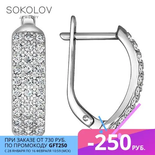 Серьги SOKOLOV из серебра с фианитами, Серебро, 925, Женские, Серьги 2022 тренд, Оригинальная продукция