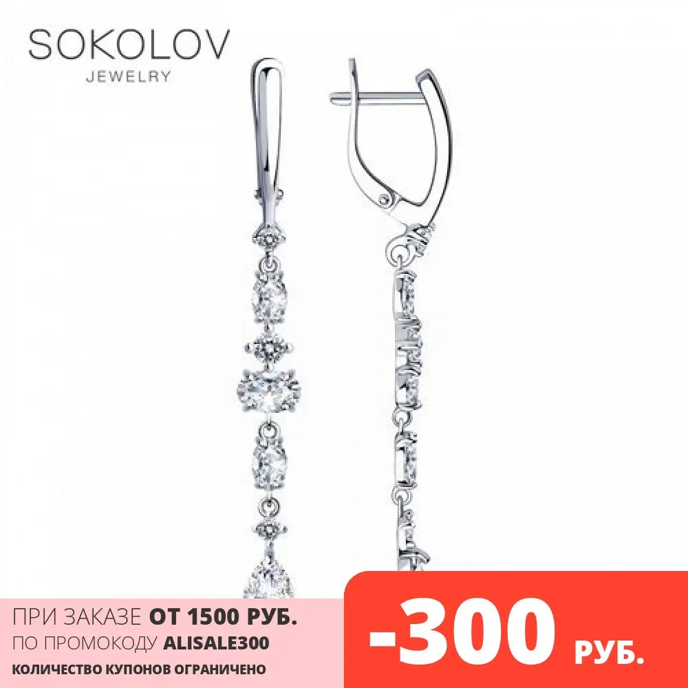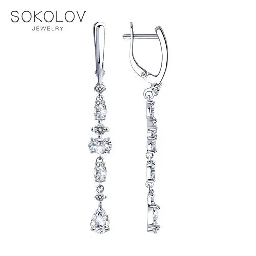 Серьги длинные SOKOLOV из серебра с фианитами, Серебро, 925, Женски...