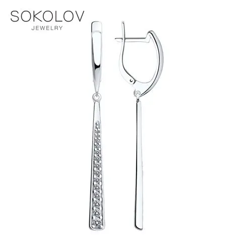 Серьги SOKOLOV из серебра с фианитами, Серебро, 925, Женские, Серьги 2022 тренд, Оригинальная продукция
