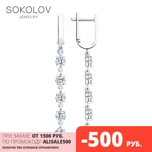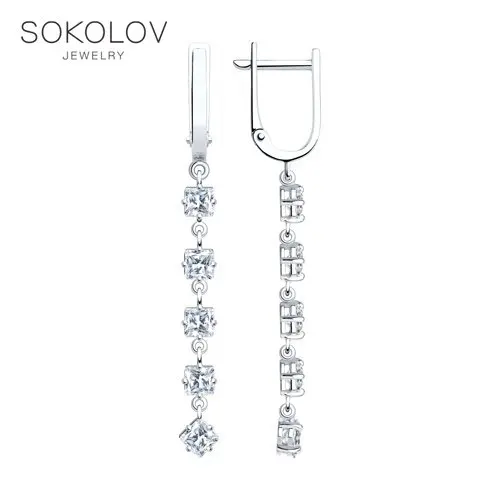 Серьги длинные SOKOLOV из серебра с фианитами, Серебро, 925, Женские, Серьги 2022 тренд, Оригинальная продукция
