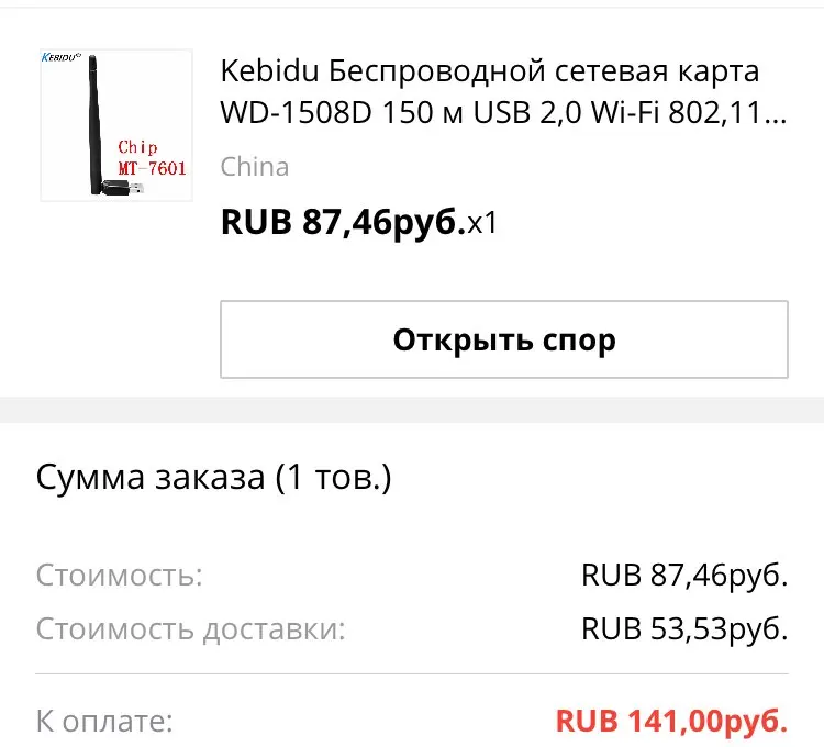 Заказ так и не пришёл. В Китае посылка трекалась, в России - нет. Поэтому и не смог открыть спор.