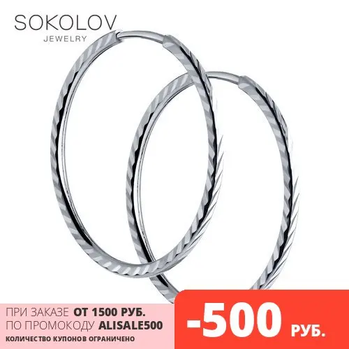Серьги конго SOKOLOV из серебра с алмазной гранью, Серебро, 925, Женские, Серьги 2022 тренд, Оригинальная продукция