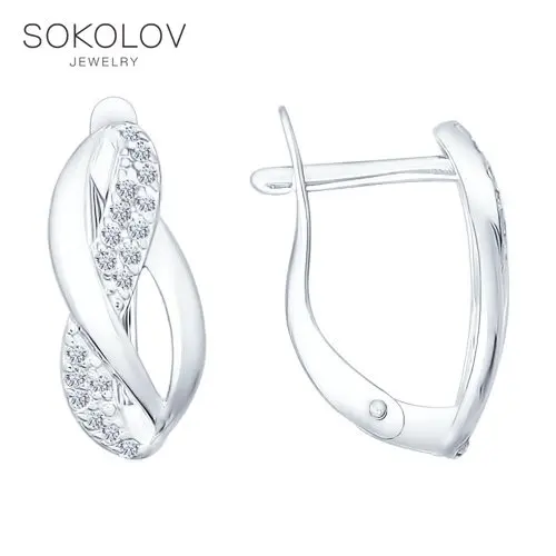 Серьги SOKOLOV из серебра с фианитами, Серебро, 925, Женские, Серьг...