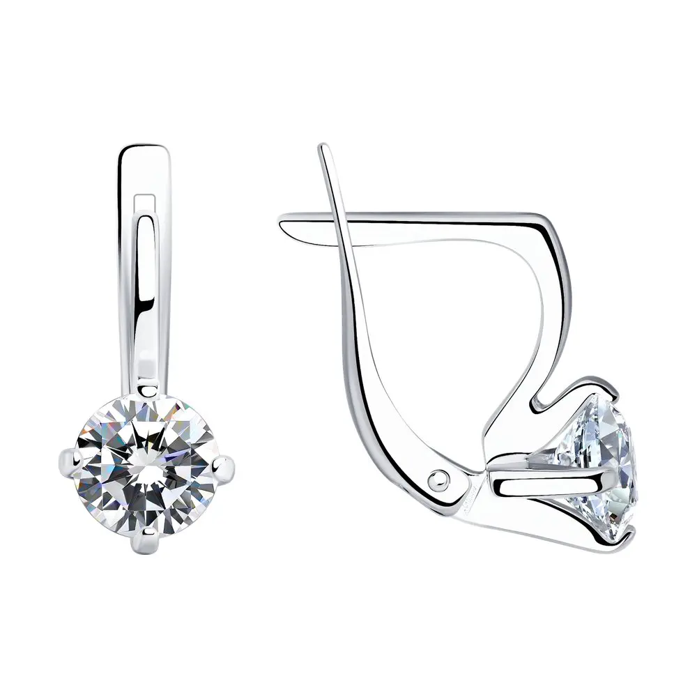 Серьги SOKOLOV из серебра с фианитамиКлассические серьги из серебра с фианитами – украшение, с выбором которого трудно прогадать. Благодаря изящной форме и оптимальному размеру серьги подходят всем без исключения. Надёжную фиксацию украшения обеспечивает английский замок. Это универсальная модель, которая прекрасно гармонирует и с официозом деловой встречи, и с повседневными образами, внося в них необходимую нотку элегантности.