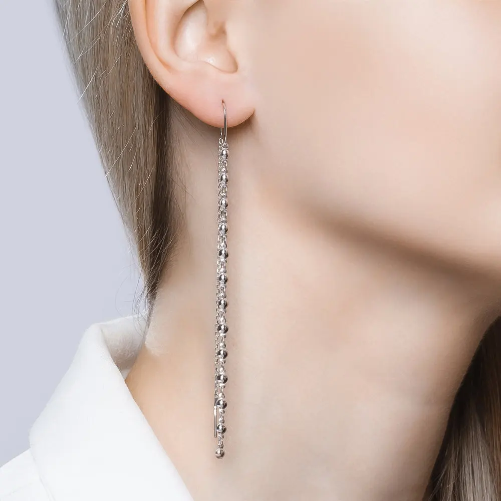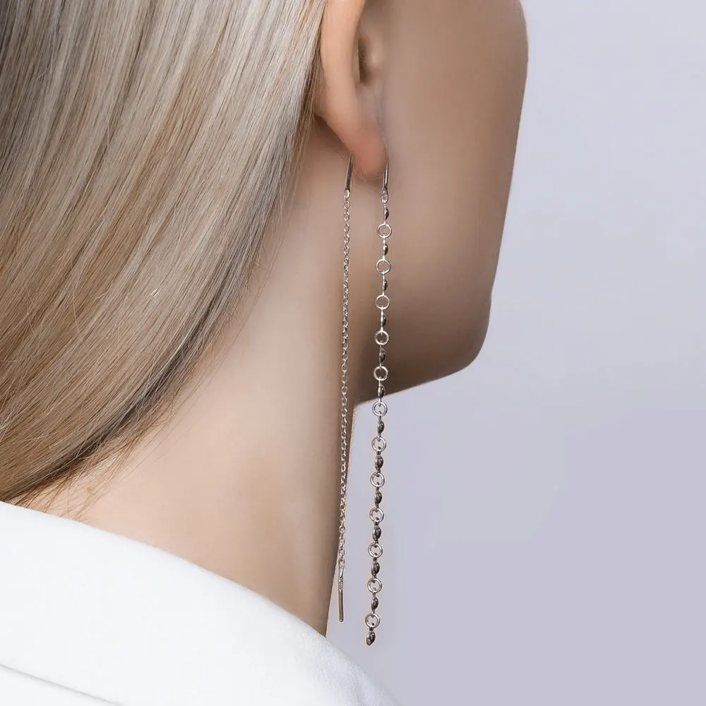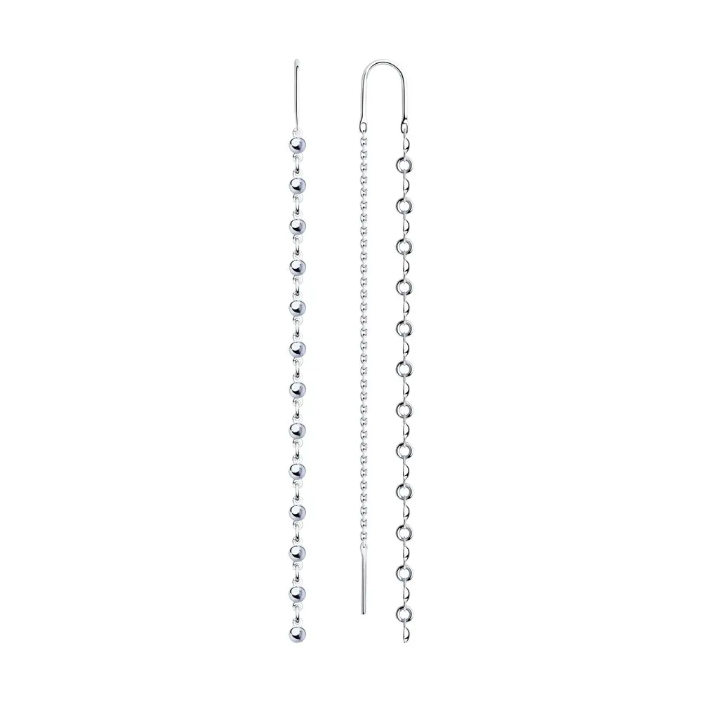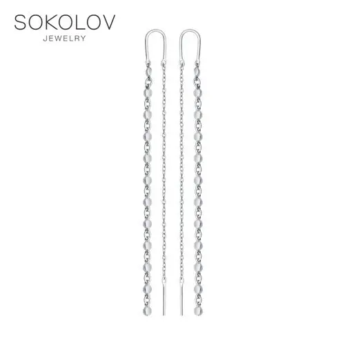 Серьги-цепочки SOKOLOV из серебраИзящный дизайн серебряных серёг-цепочек понравится любительницам лёгких и женственных украшений. Это серьги-продёвки без замка, которые просто надеваются, комфортно носятся, не рискуют расстегнуться и потеряться. Лаконичный декор в виде оригинального плетения идеально вписывается в конструкцию модели, которая предполагает акцентность в зоне шеи. Серьги-цепочки разнообразят повседневные образы и гармонично впишутся в вечерние.