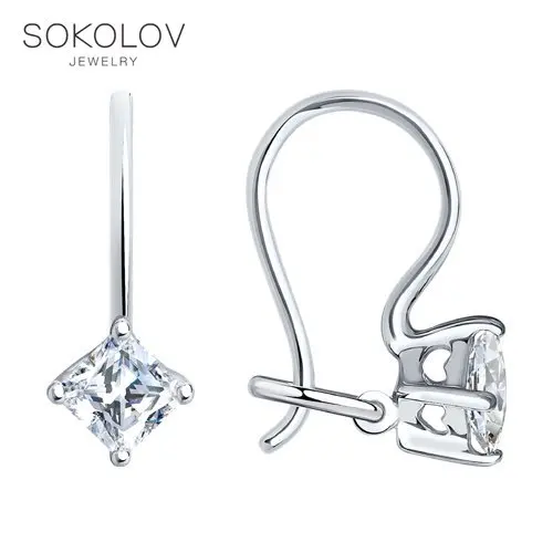 Серьги SOKOLOV из серебра с фианитами, Серебро, 925, Женские, Серьг...