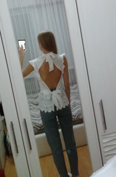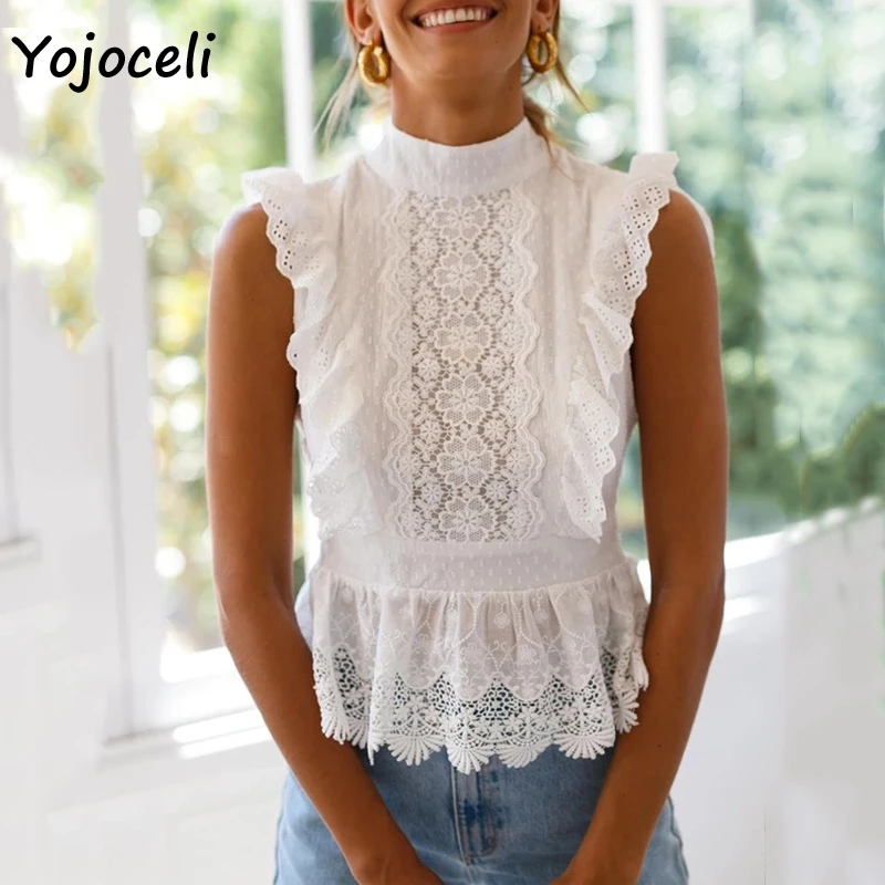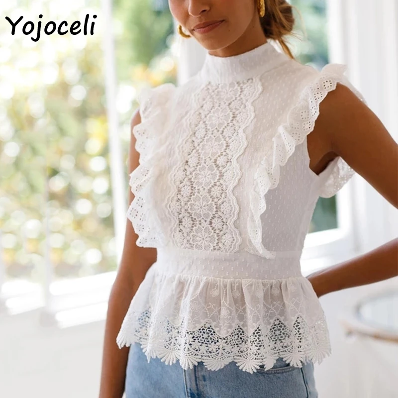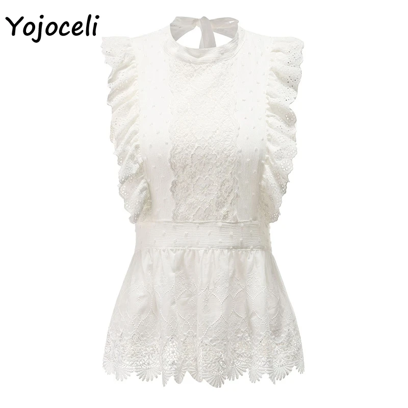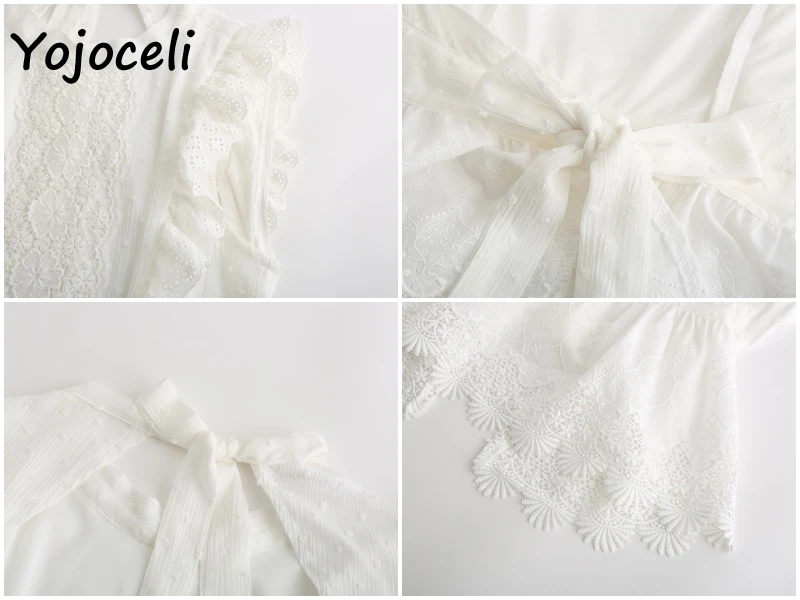 Женская кружевная блузка Yojoceli, белая хлопковая блузка с бантом сзади, кружевная блузка с оборками