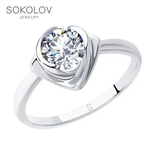 Кольцо SOKOLOV из серебра с фианитом, Серебро, 925, Женское, Оригинальная продукция