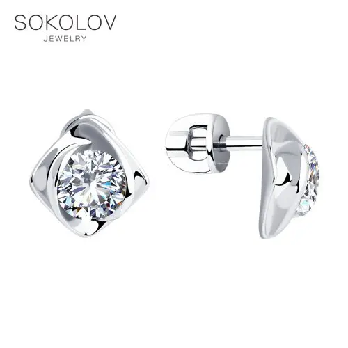 Женские серьги-пусеты SOKOLOV из серебра с фианитами, Серебро, 925,...