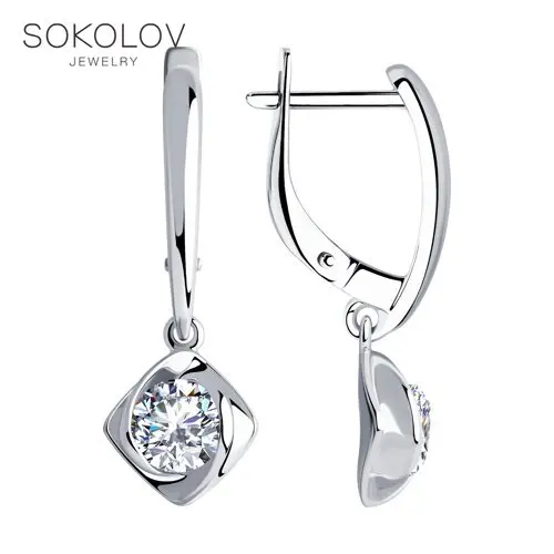 Серьги SOKOLOV из серебра с фианитами, Серебро, 925, Женские, Серьг...