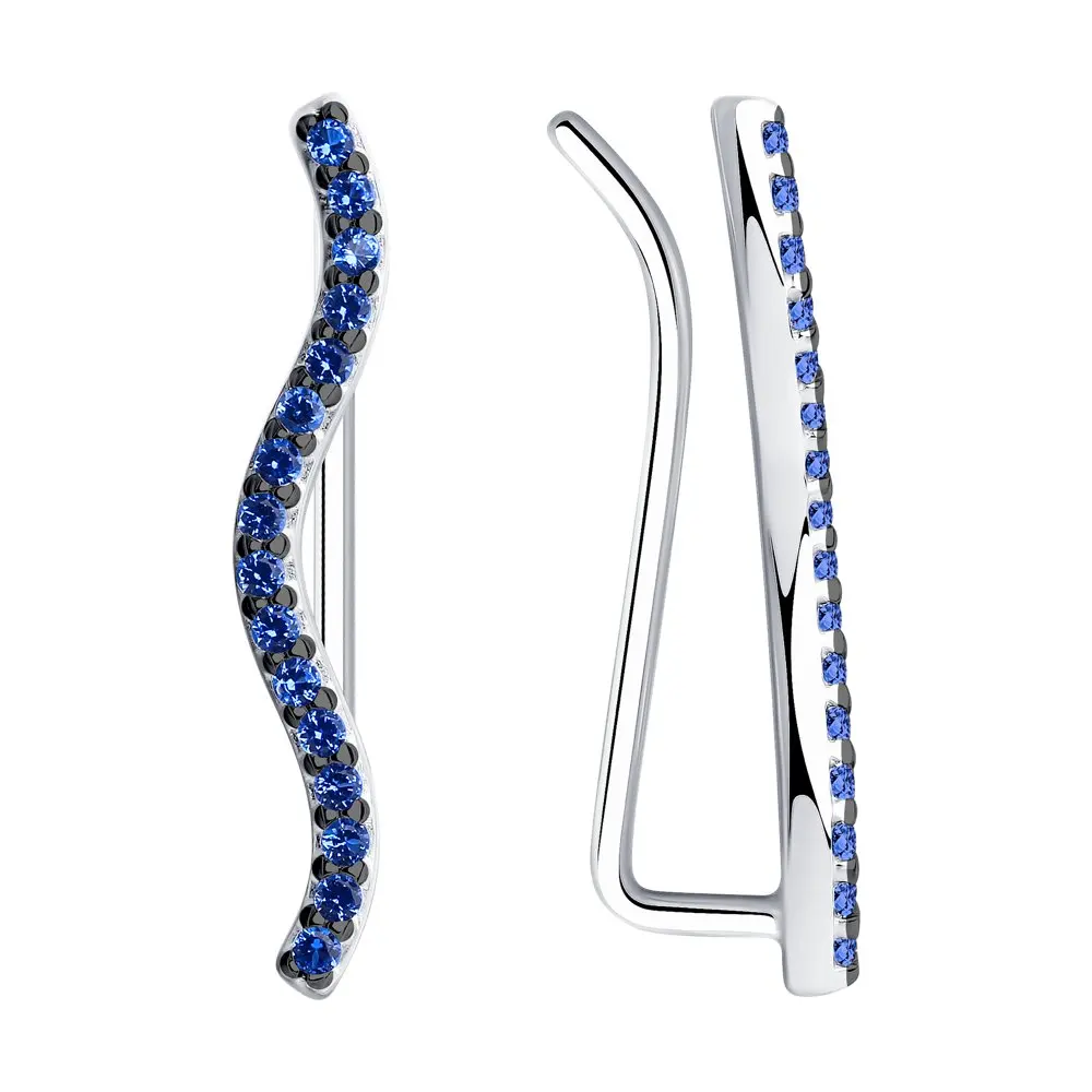 Серьги SOKOLOV из серебра с фианитамиСерьги-зажимы, или каффы, сегодня находятся в топе сезонных трендов. Сдавать своих модных позиций они не собираются, поэтому хотя бы одно такое ультрамодное украшение должно быть и у вас! Синяя фианитовая дорожка приобретает форму змейки, и, благодаря контрастному коже цвету, привлекает всеобщее внимание. Создавайте стильные образы для вечеринки или, напротив, вносите яркие акценты в будни.