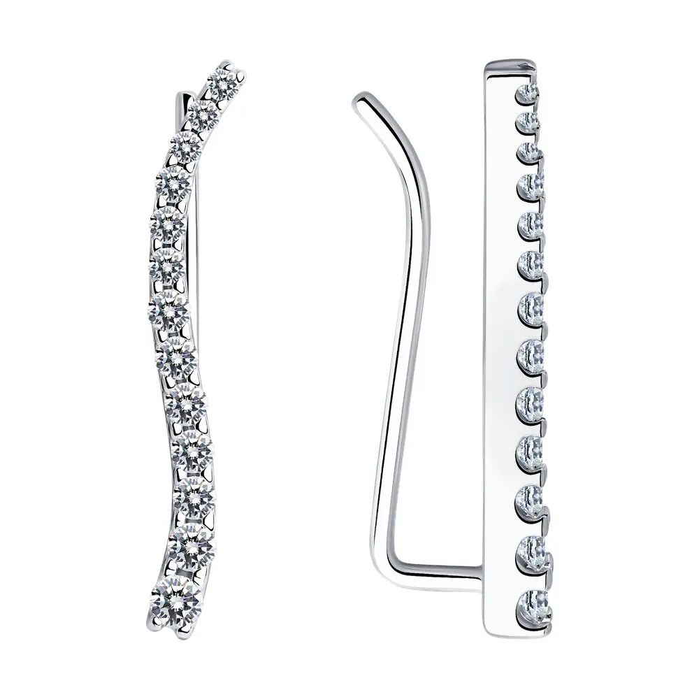 Серебряные серьги-зажимы SOKOLOV, Серебро, 925, Женские, Серьги 2022 тренд, Оригинальная продукция